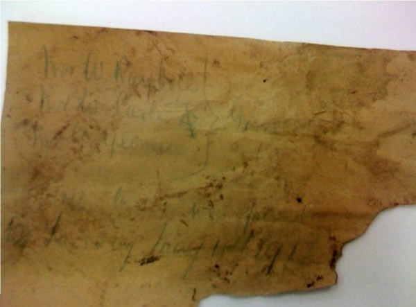 据报道称,英国石匠史蒂夫•曼(Steve Mann)在当地时间24日无意间发掘出了这个玻璃瓶,随后在27日把它交给了达勒姆大学里的管理员莉兹•布兰尼根(Liz Brannigan),利兹随后把瓶塞放在了显微镜下观察,并没有过多发现。而这其中唯一的线索可能就是信笺上的字“全球剧院”。